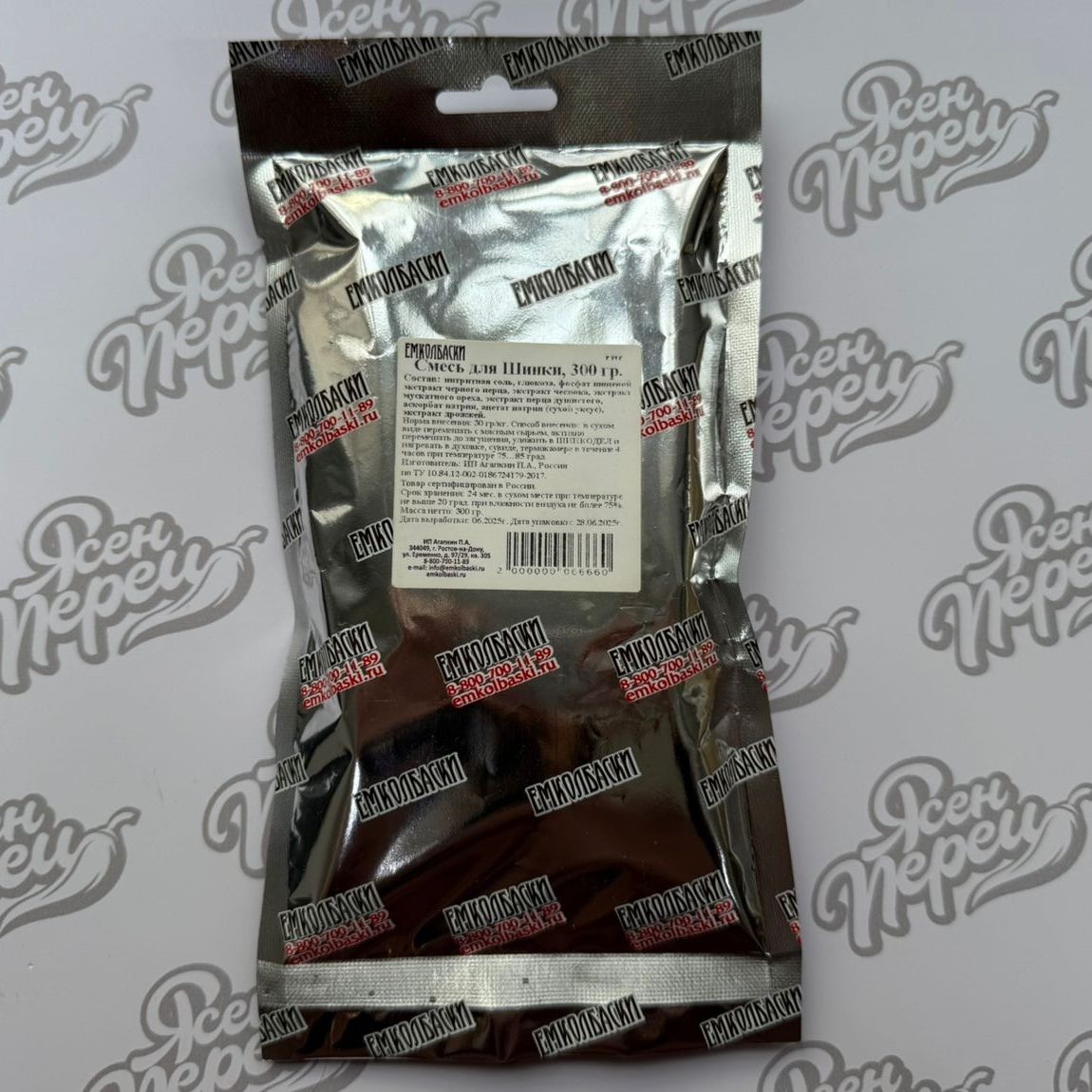 Состав: нитритная соль, глюкоза, фосфат пищевой, экстракт черного перца, экстракт чеснока, экстракт мускатного ореха, экстракт перца душистого, аскорбат натрия, ацетат натрия (сухой уксус), экстракт дрожжей.